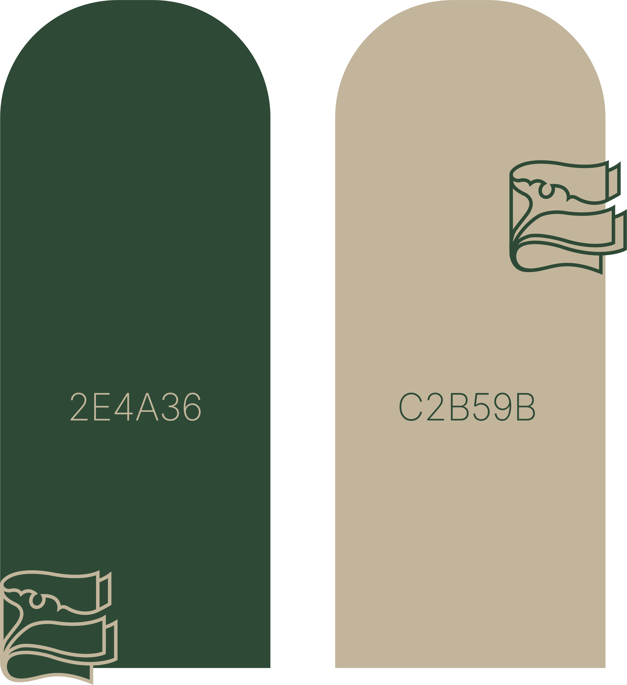 The color chosen for this logo is dark green alongside an earth-tone shade which represent the history and trust behind the shapes and the brand.